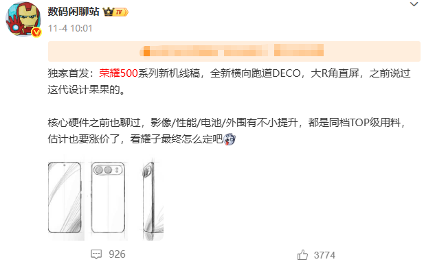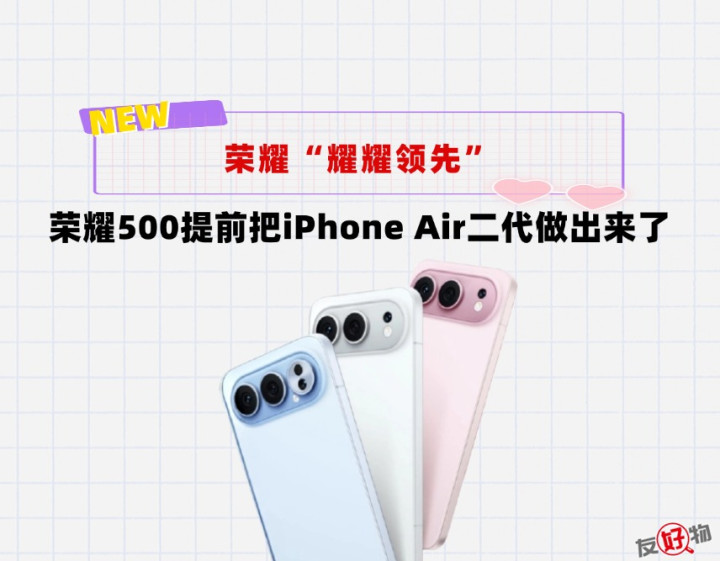 早些时候,博主@数码闲聊站 就曝光了荣耀500标准版蓝色的图片。站哥这个图一放出来,咱估计很多人都要说果味太浓。你说它很Air吧,咱怎么觉得它比iPhone Air更好看呢?