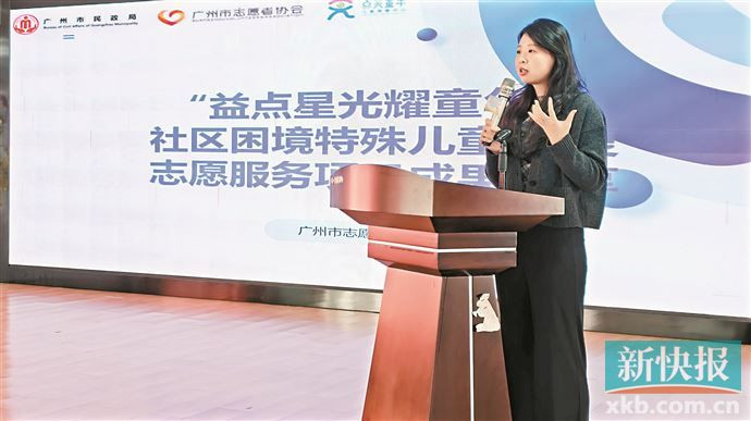 广州市志愿者协会代表分享社区困境特殊儿童康复志愿服务项目。