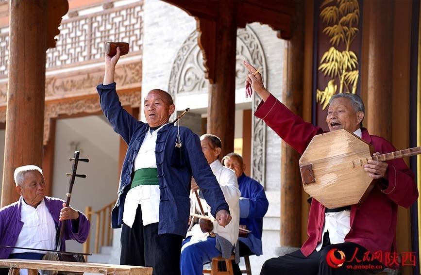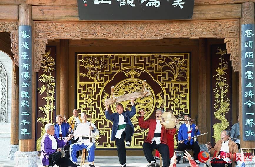 张喜民(右一)演绎华阴老腔《将令一声震山川》。人民网记者 孙挺摄